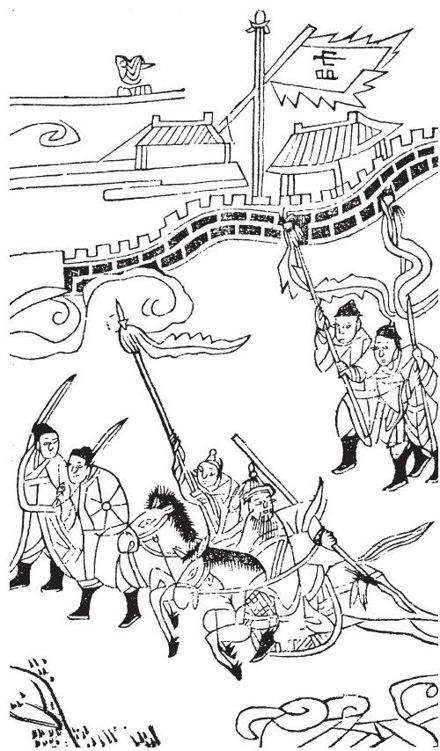 单言崇侯虎父子,领败兵迤逦望前正走,只见黄元济、孙子羽催后军赶来,打马而行。侯虎在马上叫众将言曰:“吾自提兵以来,未尝大败,今被逆贼暗劫吾营,黑夜交兵,未曾准备,以致损折军将。此恨如何不报!吾想西伯侯姬昌自在安然,违避旨意,按兵不动,坐观成败,真是可恨!”长子应彪答曰:“军兵新败,锐气已失,不如按兵不动,遣一军催西伯侯起兵前来接应,再作区处。”侯虎曰:“我儿所见甚明。到天明收住人马,再作别议。”言未毕,一声炮响,喊杀连天,只听得叫:“崇侯虎快快下马受死!”侯虎父子、众将急向前看时,见一员小将,束发金冠,金抹额,双摇两根雉尾,大红袍,金锁甲,银合马,画杆戟,面如满月,唇若涂朱,厉声大骂:“崇侯虎,吾奉父亲之命,在此候尔多时。可速倒戈受死!还不下马,更待何时!”侯虎大骂曰:“好贼子!你父子谋反,忤逆朝廷,杀了朝廷命官,伤了天子军马,罪业如山。寸磔汝尸,尚不足以赎其辜。偶尔夤夜中贼奸计,辄敢在此耀武扬威,大言不惭。不日天兵一到,汝父子死无葬身之地。谁与我拿此反贼?”黄元济纵马舞刀,直取苏全忠。全忠用手中戟,对面相还,两马相交,一场大战: