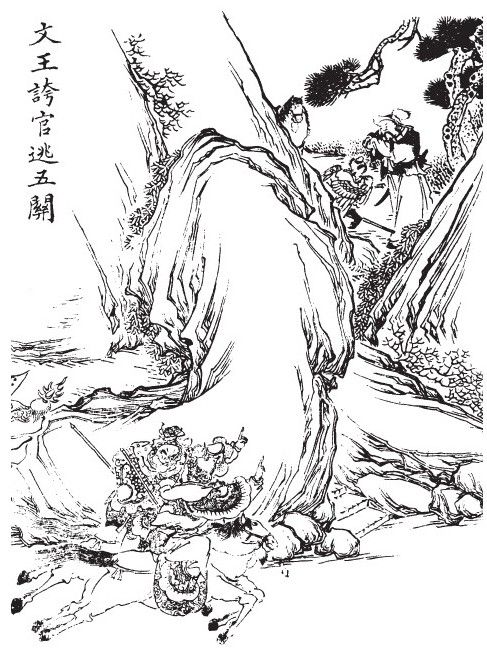且说朝歌城馆驿见文王一夜未归,心下慌忙,急报费大夫府得知。左右通报费仲曰:“外有驿官禀说,西伯文王一夜未归,不知何往。此事重大,不得不预先禀明。”费仲闻知,命:“驿官且退,我自知道。”费仲沉思:“事干自己身上,如何处治?”乃着堂候官:“请尤爷来商议。”少时,尤浑到费仲府,相见礼毕。仲曰:“不道姬昌,贤弟保奏,皇上封彼为王,这也罢了。孰意皇上准行夸官三日,今方二日,姬昌逃归,不俟主命,必非好意。事干重大,且东南二路,叛乱多年,今又走了姬昌,使皇上又生一患。这个担儿谁担?为今之计,将如之何?”尤浑曰:“年兄且宽心,不必忧闷,我二人之事,料不能失手。且进内庭面君,着两员将官,赶去拿来,以正欺君负上之罪,速斩于市曹,何虑之有!”二人计议停当,忙整朝衣,随即入朝。纣王正在摘星楼赏玩。侍臣启驾:“费仲、尤浑候旨。”王曰:“宣二人上楼。”二人见王礼毕。王曰:“二卿有何奏章来见?”费仲奏曰:“姬昌深负陛下洪恩,不遵朝廷之命,欺藐陛下,夸官二日,不谢圣恩,不报王爵,暗自逃归,必怀歹意。恐回故土,以起猖獗之端。臣荐在前,恐后得罪。臣等预奏,请旨定夺。”纣王怒曰:“二卿曾言姬昌忠义,逢朔望焚香叩拜,祝祈风和雨顺,国泰民安,朕故此赦之。今日坏事,皆出二卿轻举之罪!”尤浑奏曰:“自古人心难测,面从背违,知外而不知内,知内而不知心,正所谓‘海枯终见底,人死不知心’。姬昌此去不远,陛下传旨,命殷破败、雷开点三千飞骑,赶去拿来,以正逃官之法。”纣王准奏,“速遣殷、雷二将,点兵追赶。”使命传旨。神武大将军殷破败、雷开领旨,往武成王府来调三千飞骑,出朝歌西门,一路上赶来。怎见得: