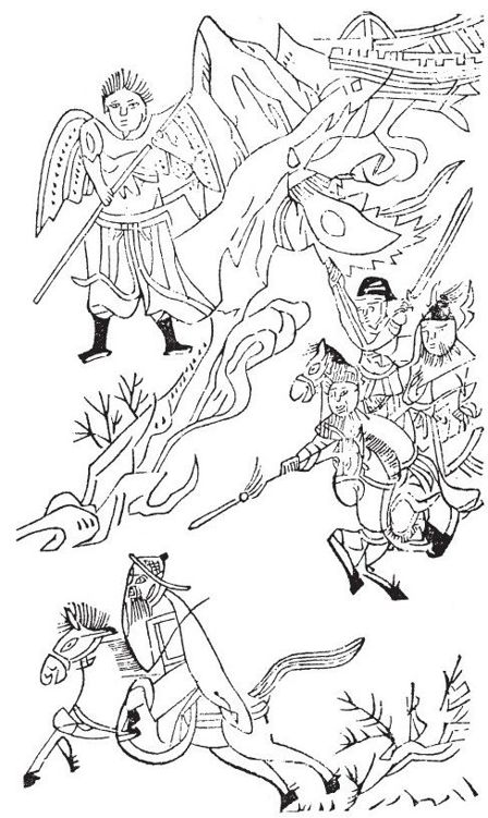 不说追兵随后飞云掣电而来。且说文王自出朝歌,过了孟津,渡了黄河,望渑池大道徐徐而行,扮作夜不收模样。文王行得慢,殷、雷二将赶得快,不觉看看赶上。文王回头,看见后面尘土荡起,远闻人马喊杀之声,知是追赶。文王惊得魂飞无地,仰天叹曰:“武成王虽是为我,我一时失于打点,夤夜逃归,想必当今知道,傍人奏闻,怪我私自逃回,必有追兵赶逐。此一拿回,再无生理。如今只得趱马前行,以脱此厄。”文王这一回,似失林飞鸟,漏网惊鱼,那分南北,孰辨东西。文王心忙似箭,意急如云,正是: