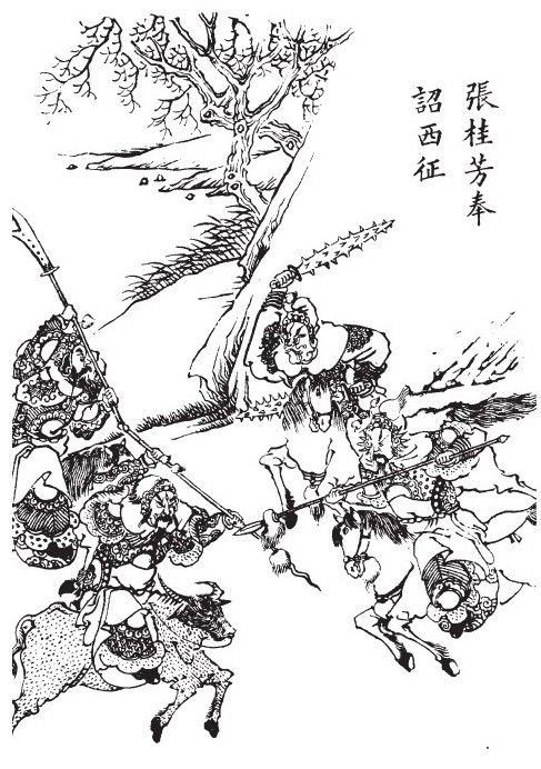 素白旗上书大字,奉敕西征张桂芳。