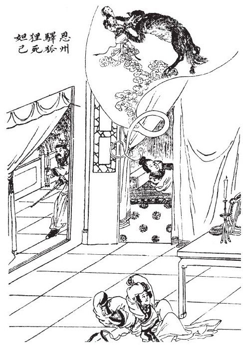 苏护被这阵怪风吹得毛骨耸然。心下正疑惑之间,忽听后厅侍儿一声喊叫:“有妖精来了!”苏护听说后边有妖精,急忙提鞭在手,抢进后厅,左手执灯,右手执鞭,将转大厅背后,手中灯已被妖风扑灭。苏护急转身,再过大厅,急叫家将取进灯火来时,复进后厅,只见众侍儿慌张无措。苏护急到妲己寝榻之前,用手揭起幔帐,问曰:“我儿,方才妖气相侵,你曾见否?”妲己答曰:“孩儿梦中听得侍儿喊叫‘妖精来了’,孩儿急待看时,又见灯光,不知是爹爹前来,并不曾看见甚么妖怪。”护曰:“这个感谢天地庇佑,不曾惊吓了你,这也罢了。”护复安慰女儿安息,自己巡视,不敢安寝。不知这个回话的乃是千年狐狸,不是妲己。方才灭灯之时,再出厅前取得灯火来,这是多少时候了,妲己魂魄已被狐狸吸去,死之久矣。乃借体成形,迷惑纣王,断送他锦绣江山。此是天数,非人力所为。有诗为证: