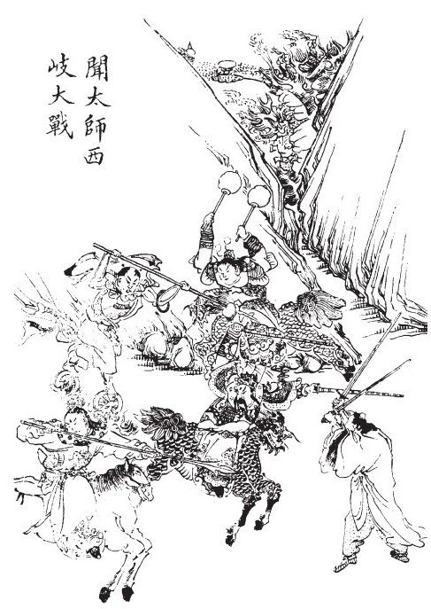 且说闻太师兵败岐山七十里,收住败残人马,结下营寨查点,损折军兵二万有余。太师升帐,长叹曰:“自来提兵征伐多年,未尝有挫锋锐,今日到此,失机丧师,殊为痛恨!”心下十分不乐,自思无门,欲调别将,各有镇守。太师乃丹心赤胆,恨不能一刻遂平西地,其心才快,岂意如今失机被辱,只急的当中神目睁开,长吁短叹。吉立近前启曰:“太师不必忧虑,况且三山五岳之中,道友颇多,或请一二位,大事自然可成。”太师听说:“老夫着军务烦冗,紊乱心怀,一时忘却。”遂上帐,分付邓、辛二将:“好生看守大营,吾去来。”太师乘了墨麒麟,把风云角一拍,那兽起在空中。正是:
