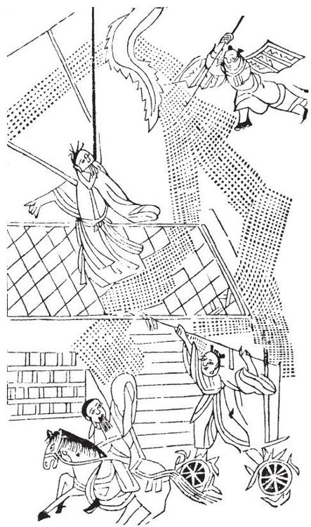 话说道德真君领燃灯命,作罢歌,提剑而来。真君曰:“王变,你等不谙天时,指望扭转乾坤,逆天行事,只待丧身,噬脐何及。今尔等十阵已破八九,尚不悔悟,犹然恃强狂逞!”王天君听得道德真君如此之语,大怒,仗剑来取。道德真君剑架忙还。来往数合,王变进本阵去了。道德真君闻金钟击响,随后赶进阵中。王变上台,也将葫芦如前一样打将下来,只见红水满地。真君把袖一抖,落下一瓣莲花,道德真君双脚踏在莲花瓣上。任凭红水上下翻腾,道德真君只是不理。王天君又拿一葫芦打下来,真君顶上现出庆云,遮盖上面,无水粘身;下面红水不能粘其步履,如一叶莲舟相似。正是: