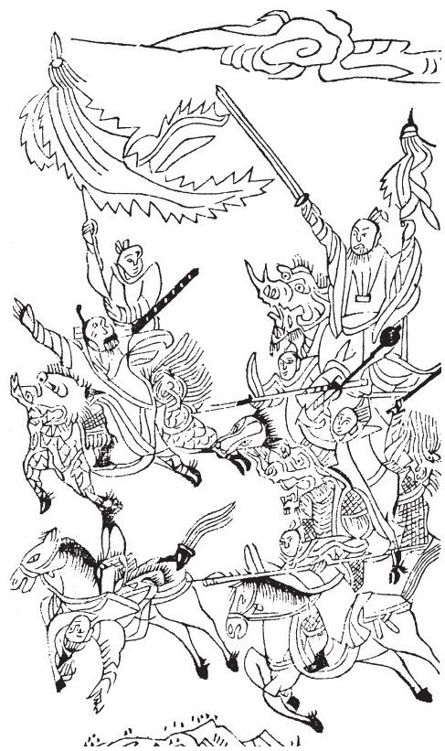 话说闻太师败至岐山,收住败残人马,点视,止三万有余。太师又见折了陶荣,心中闷闷不语。邓忠曰:“太师,如今兵回那里?”闻太师问:“此处往那里去?”辛环曰:“此处往佳梦关去。”太师道:“就往佳梦关去。”催动人马前进。可怜兵败将亡,其威甚挫,着实没兴。一路上人人叹息,个个吁嗟。人马正行间,只见桃花岭上一首黄幡,幡下有一道人,乃是广成子。闻太师向前问曰:“广成子,你在此有甚么事?”广成子答曰:“特为你在此等候多时。你今违天逆命,助恶灭仁,致损生灵,害陷忠良,是你自取。我今在此,也不与你为仇,只不许你过桃花岭,任凭你往别处去便罢。”闻太师大怒曰:“吾今不幸,兵败将亡,敢欺吾太甚!”催开墨麒麟,提鞭就打。广成子撒步向前,用宝剑急架相还。未及三五合,广成子取番天印祭于空中。太师一见,知印利害,拨转麒麟望西便走。邓忠跟着太师退回。辛环曰:“太师方才怎的怕他,便自退兵?”太师曰:“广成子番天印,吾等招架不住。若中此印,倘或无生,如何是好!且自避他。只如今不得过此岭,却往那里去?”邓忠曰:“不若进五关往燕山去。”太师只得调转人马,往燕山大路而来。太师晓行夜住,不一日,人马行至燕山。猛然抬头,见太华山上竖一首黄幡,赤精子立于幡下。太师催麒麟至前。赤精子曰:“来者乃闻太师,你不必往此燕山去,此处非汝行之地。吾奉燃灯命,在此阻你,不许你进五关。原是那里来,还是那里去。”太师只气得三尸魂暴躁,七窍内生烟,大呼曰:“赤精子,吾乃是截教门人,总是一道,何得欺吾太甚!我虽兵败,拚得一死,定与你做一场,岂肯擅自干休!”将麒麟一夹,四蹄登开,使开金鞭,神光灿烂。赤精子抖动麻鞋,挥开宝剑,鞭剑相交。未及五七合,赤精子取阴阳镜出来。不知闻太师性命如何,且听下回分解。