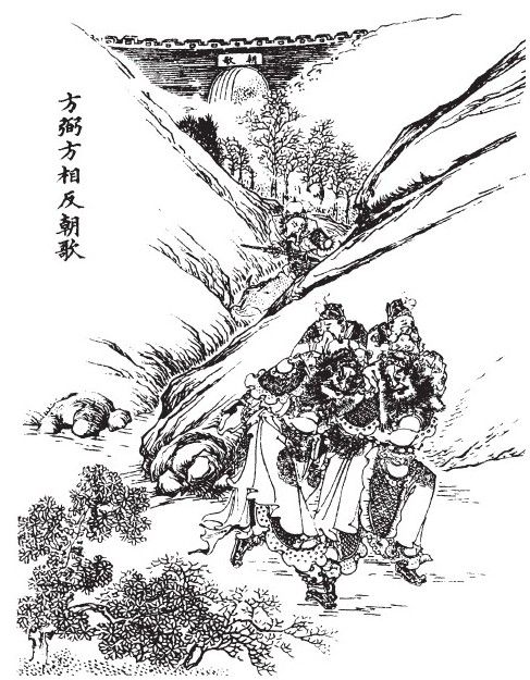 黄飞虎见国政颠倒,叠现不祥,也知天意人心,俱有离乱之兆,心中沉郁不乐,咄咄无言,又见微子、比干、箕子诸位殿下,满朝文武,人人切齿,个个长吁,正无甚计策,只见一员官,身穿大红袍,腰悬宝带,上前对诸位殿下言曰:“今日之变,正应终南山云中子之言,古云‘君不正,则臣生奸佞’。今天子屈斩太师杜元铣,治炮烙坏谏官梅伯,今日又有这异事。皇上青白不分,杀子诛妻,我想起来,那定计奸臣,行事贼子,他反在傍暗笑。可怜成汤社稷,一旦丘墟,似我等不久终被他人所掳。”言者乃上大夫杨任。黄飞虎长叹数声:“大夫之言是也!”百官默默。二位殿下悲哭不止。只见方弼、方相分开众人,方弼夹住殷郊,方相夹住殷洪,厉声高叫曰:“纣王无道,杀子而绝宗庙,诛妻有坏纲常,今日保二位殿下往东鲁借兵,除了昏君,再立成汤之嗣。我等反了!”二人背负殿下,径出朝歌南门去了。大抵二人气力甚大,彼时不知跌倒几多官员,那里当得住他!后人有诗为证。诗曰: