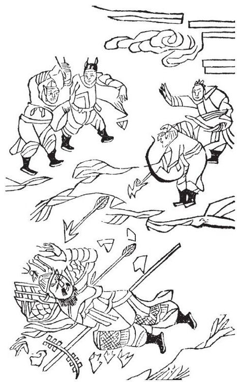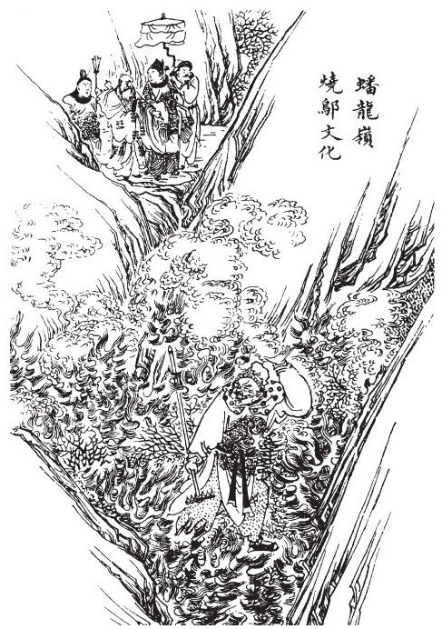 话说子牙令武吉、南宫适:“领二千人马,往蟠龙岭去埋伏引火之物,中用竹筒引线,暗埋火炮、火箭各项等物,岭上下俱用柴薪引火干燥物件,预备停当,只等邬文化来至,便可行之。”二将领令去讫。话说邬文化得了大功,纣王差官赍袍、带、表礼等物奖谕,袁洪、邬文化二将谢恩,打发天使回朝歌。不表。袁洪对邬文化曰:“荷蒙天子恩宠奖谕,邬将军,我等当得尽忠竭力,以报国恩,不负吾辈名扬于天下也。”邬文化曰:“末将明日使姜尚无备,再杀他个片甲无存,早早奏凯。”袁洪大喜,设宴庆赏。正谈笑间,探事马报入中军:“启元帅:今有姜子牙与武王在辕门闲看吾营,不知有何原故,请令定夺。”袁洪听报,即令邬文化:“暗出大营,抄出子牙之后擒之,如探囊取物耳。”邬文化领令,忙出右营门,撒开大步,拖排木,如飞云掣电而来,大呼曰:“姜尚休走!今番吾定擒你成功也。速速下骑受死,免吾费力。”子牙与武王见邬文化追来,拨转坐骑,望西南而逃。邬文化见子牙、武王落荒而走,放心追来。子牙回顾,诱邬文化曰:“邬将军,你放我君臣回营,得归故国,再不敢有犯边疆,吾群臣感将军洪恩不浅矣。”邬文化曰:“今番错过,千载难逢。”拚命赶来,那里肯舍。望前赶了一个时辰。姜子牙与武王是有脚力的;邬文化步行,又当得他是急急追赶,一气赶了五六十里,邬文化气力已乏,立住脚不赶了。子牙回头看时,见邬文化不赶,子牙勒转坐骑,大呼曰:“邬文化,你敢来与吾战三合么?”邬文化大怒曰:“有何不敢?”回身又望前赶来。子牙勒转四不相又走,看看赶至蟠龙岭了,子牙君臣进山口去了。邬文化大喜:“姜尚进山,似鱼游釜中,肉在几上!”随后追进山口。不知邬文化性命如何,且听下回分解。