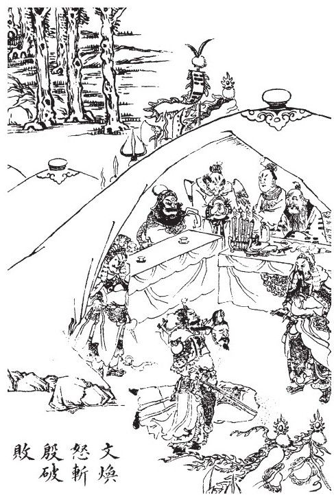 却说鲁仁杰报入城中,连折三将,大败一阵。纣王闻报,心中甚闷,与众臣共议曰:“今周兵驻师城外,兵败将亡,不能取胜,国内无人,为之奈何?”傍有殷破败奏曰:“今社稷有累卵之危,万姓有倒悬之急,朝野无人,旦夕莫待,臣与姜子牙有半面之识,舍死至周营,晓以君臣大义,劝其罢兵,令天下诸侯解释,各安本土,或未可知。如其不然,臣愿骂贼而死。”纣王从其言,使殷破败往周营说之。殷破败领旨出城,来至周营,命左右通报。只见中军官进营,来见子牙,启曰:“成汤差官至营门,请令定夺。”子牙传令:“令来。”殷破败随令而入,进了大营,好齐整!只见两边列坐天下诸侯,中军帐上坐姜子牙。殷破败上帐曰:“姜元帅,末将殷破败甲胄在身,不能全礼。”子牙忙欠身迎曰:“殷老将军此来有何见谕?”殷破败曰:“末将别元帅已久,不意元帅总六师之长,为诸侯之表率,真荣宠崇耀,令人惊羡!今特来参谒,有一言奉告,但不知元帅肯容纳否?”子牙曰:“老将军有何事见教?但有可听者,无不如命;如不可行者,亦不必言。幸老将军谅之。”子牙命赐坐,殷破败逊谢,坐而言曰:“末将尝闻,天子之尊,上等于天,天可灭乎?又法典所载:‘有违天子之制而擅专征伐者,是为乱臣。乱臣者,杀无赦。有构会群党谋为不轨,犯上无君者,此为逆臣。逆臣者,则族诛。天下人人得而讨之。’昔成汤以至德,沐风栉雨,伐夏以有天下,相传至今,六百余年,则天下之诸侯、百姓,皆世受国恩,何人不非纣之臣民哉!今不思报本,反倡为乱首,率天下诸侯相为叛乱,残贼生灵,侵王之疆土,覆军杀将,逼王之都城,为乱臣逆臣之尤,罪在不赦。千古之下,欲逃篡弑之名,岂可得乎?末将深为元帅不取也!以末将愚见:元帅当屏退诸侯,各还本国,各修德业,毋令生民涂炭。天子亦不加尔等之罪,惟厥修政事,以乐天年,则天下受无疆之福矣。不识元帅意下如何?”子牙笑曰:“老将军之言差矣!尚闻:‘天下者非一人之天下,乃天下人之天下也。’故天命无常,惟眷有德,昔尧帝有天下而让于舜;虞帝复让于禹;禹相传至桀而荒怠朝政,不修德业,遂坠夏统。成汤以大德得承天命,于是放桀而有天下,传至于今。岂意纣王罪甚于桀,荒淫不道,杀妻诛子,剖贤人之心,炮烙谏官,虿盆宫女,囚奴正士,醢戮大臣,斫朝涉之胫,刳剔孕妇,三纲尽绝,五伦有乖,天怒民怨,自古及今,罪恶昭著未有若此之甚者。语云:‘贼仁者,谓之贼;贼义者,谓之残。残贼之人,谓之一夫。’乃天下所共弃者,又安得谓之君哉!今天下诸侯共伐无道,正为天下洗此凶残,救民于水火耳,实有光于成汤。故奉天之罚者,谓之天吏,岂得尚拘之以臣伐君之名耶?”殷破败见子牙一番言词,凿凿有理,知不可解,自思:“不若明目张胆,慷慨痛言一番,以尽臣节而已。”乃大言曰:“元帅所说,乃一偏之言,岂至公之语!吾闻:君父有过,为臣子者必委曲周旋谏诤之,务引其君于当道。如甚不得已,亦尽心苦谏,虽触君父之怒,或死,或辱,或缄默以去,总不失忠臣孝子之令名。未闻暴君之过,扬父之恶,尚称为臣子者也。元帅以至德称周,以至恶归君,而尚谓之至德者乎?昔汝先王被囚羑里七年,蒙赦归国,愈自修德,以达君父知遇之恩,未闻有一怨言及君。至今天下共以大德称之。不意传之汝君臣,构合天下诸侯,妄称君父之过,大肆猖獗,屠城陷邑,覆军杀将,白骨盈野,碧血成流,致民不聊生,四民废业,天下荒荒,父子不保,夫妻离散。此皆汝等造这等恶业,遗羞先王,得罪于天下后世,虽有孝子慈孙,焉能盖其篡弑之名哉。况我都城,尚有甲兵十余万,将不下数百员,倘背城一战,胜负尚未可知,汝等岂就藐视天子,妄恃己能耶?”左右诸侯听殷破败之言,俱各大怒。子牙未及回言,只见东伯侯姜文焕带剑上帐,指殷破败大言曰:“汝为国家大臣,不能匡正其君,引之于当道,今已陷之于丧亡,尚不自耻,犹敢鼓唇弄舌于众诸侯之前耶?真狗彘不若,死有余辜!还不速退,免尔一死!”子牙急止之曰:“两国相争,不禁来使。况为其主,何得与之相争耶?”姜文焕尚有怒色。殷破败被姜文焕数语,骂得勃然大怒,立起骂曰:“汝父构通皇后,谋逆天子,诛之宜也。汝尚不克修德业,以盖父愆,反逞强恃众,肆行叛乱,真逆子有种。吾虽不能为君讨贼,即死为厉鬼,定杀汝等耳!”姜文焕被殷破败之骂,一腔火起,满面烟生,执剑大骂曰:“老匹夫!我思吾父被醢,国母遭害,俱是你这一班贼子播弄国政,欺君罔上,造此祸端!不杀你这老贼,吾父何日得泄此沉冤于地下也!”骂罢,手起一刀,挥为两段。及至子牙止之,已无济矣。众诸侯齐曰:“东伯姜君侯斩此利口匹夫,大快人意!”子牙曰:“不然。殷破败乃天子大臣,彼以礼来讲好,岂得擅行杀戮,反成彼之名也。”姜文焕曰:“这匹夫敢于众诸侯之前鼓唇摇舌,说短论长,又叱辱不才,情殊可恨。若不杀之,心下郁闷。”子牙曰:“事已至此,悔之无及。”命左右将破败之尸抬出,以礼厚葬,打点进兵。不知后事如何,下回分解。